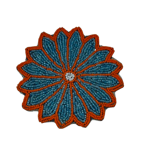 Bring nature’s beauty to your table with our Floral Bloom Handcrafted Beaded Coasters. Designed in a radiant flower shape, this coaster features stunning turquoise petals outlined in bright orange beads, creating a striking balance of color and craftsmanship.